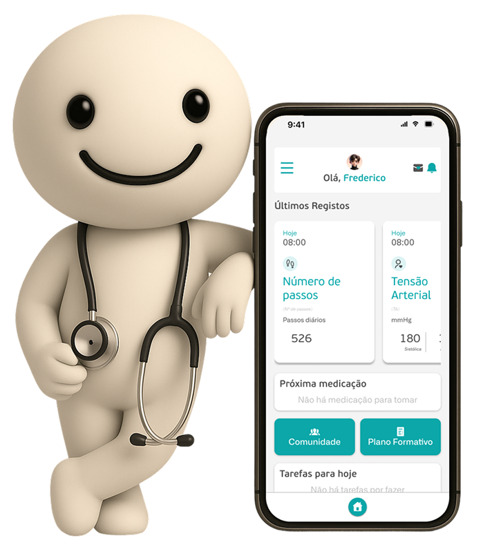 Terá acesso apenas aos dados autorizados pelo paciente, como medições, registos de medicação, problemas de saúde e evolução do acompanhamento.